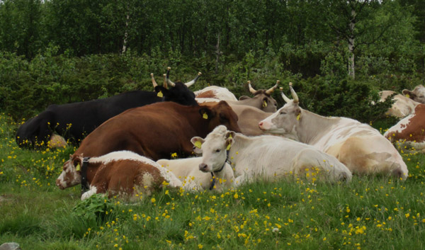 brune, kvite og grå kyr, og de kan være brandete, sida,