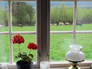 bare selve gården blir ryddet. Kyr på beite går opp gamle